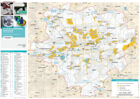 Um in Gesprächen mit produktionsrelevanten Akteuren den Blick der Investoren auf das Wesentliche zu lenken und den Kollegen eine Argumentationshilfe zu bieten, haben die Teams Wissenskerne und Standortkommunikation das Themenposter "Digitale Fabrik Dortmund" entwickelt, welches nun digital im Anhang und im Printformat vorliegt. Dieses stellt auf einen Blick die Struktur des Produktionsstandortes Dortmund mit seinen Themen-, Technologie- und Branchschwerpunkten dar. Das Themenposter ergänzt damit in idealer Weise den "Kompetenzatlas Produktionswirtschaft", der im Herbst erschienen ist und in dem diese Stärken mit konkreten unternehmerischen Beispielen belegt werden.