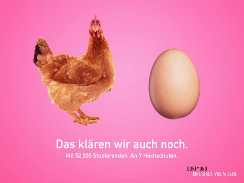 Was war zuerst: Henne oder Ei? Diese Frage stellt die Stadt Dortmund aktuell im Hauptbahnhof, um für den Wissenschaftsstandort Dortmund zu werben. Die Idee dazu stammt von FH-Studierenden.