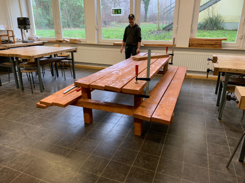 In diesem erhalten 12 SchülerInnen der Katholischen Hauptschule Husen, im Alter zwischen 13-16 Jahren (Klasse 9) die Gelegenheit, unter fachkundiger Anleitung ein „Grünes Klassenzimmer“ für den Außenbereich der Schule zu gestalten. Dabei sind die Schüler an der Planung, dem Bau und der Montage von Möbeln für den Außenbereich beteiligt. Hergestellt werden zwei Sitzbänke und ein Holztisch für ca. 20 SchülerInnen.