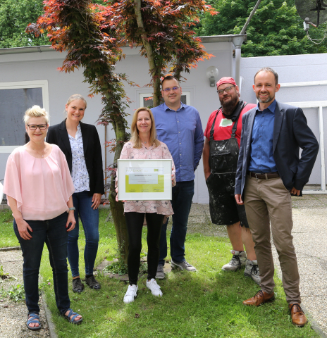 "Kollektiv, sozial und zukunftsgewandt" - so beschrieb Sebastian Unkhoff (Geschäftsführer Operativ der Agentur für Arbeit Dortmund) das Handwerkskollektiv bei der Preisverleihung vor Ort in seiner Laudatio und überreichte die Prädikatsurkunde an den Geschäftsführer Stefan Fiedler sowie die Mitinhaber*innen Stephanie Nagel und Sven Fiedler.