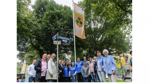 Die Lenkungsgruppe der sich in Gründung befindlichen Interessengemeinschaft "BergAUF!" hat der Bergstraße erst einmal ein wichtiges identitätsstiftendes Symbol überreicht: die erste Lindenhorstfahne.